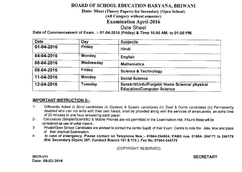 Bhiwani Board Result 2014 / Board of secondary education, haryana bhiwani::senior secondary (class 12th) examination result march 2015.