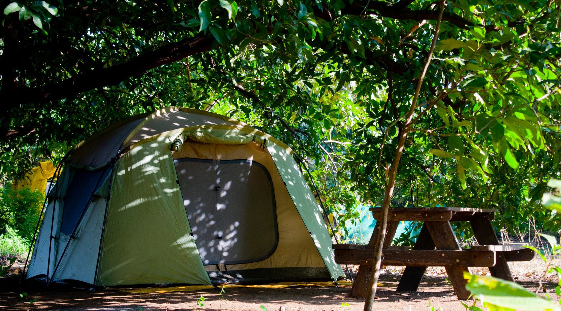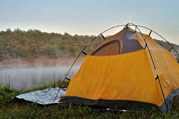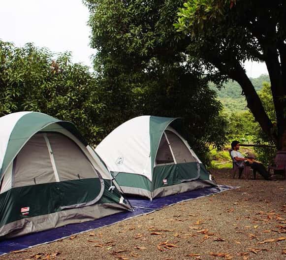 Big Red Tent Vasind : Zo dicht bij de natuur , onze tenten dicht bij de rivierbedding.