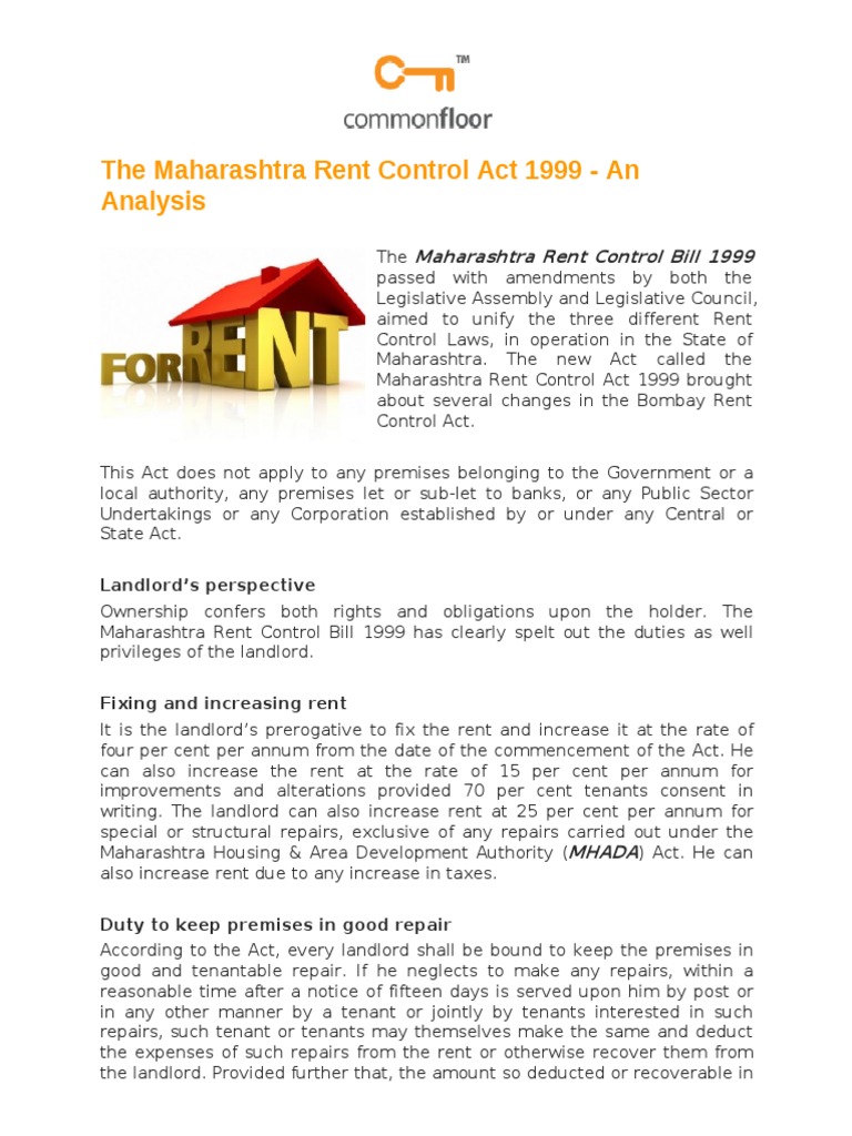 Maharashtra Rent Control Act 2017 Pdf / Assent was first published in the maharashtra.