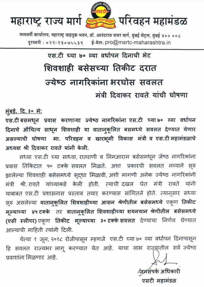 Msrtc Senior Citizen Age : It is applicable throughout india.