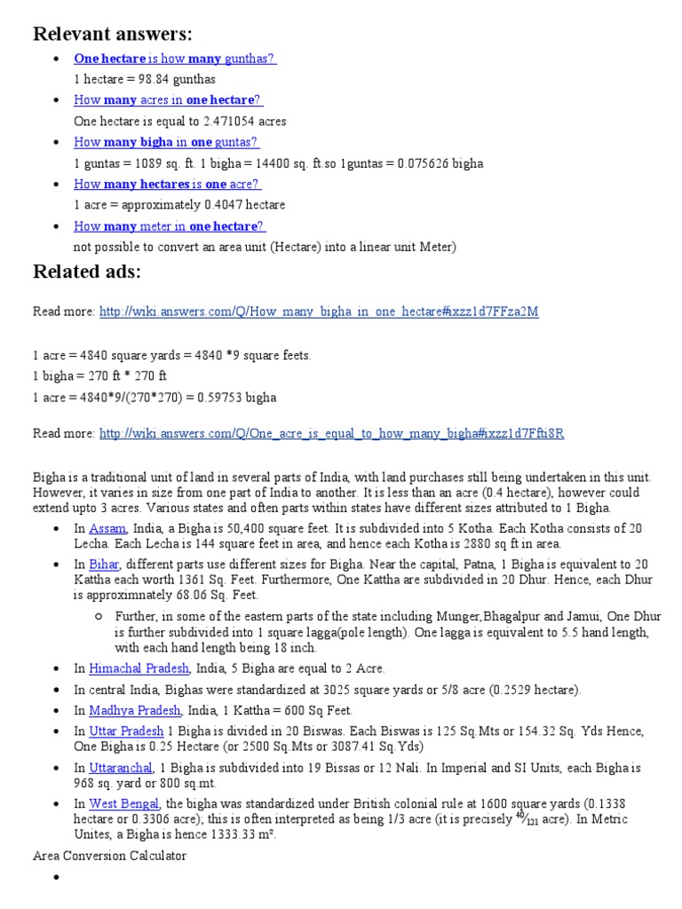 One Acre In Bigha / The bigha (also formerly beegah) is a traditional unit of measurement of area of a land, commonly used in india (including uttarakhand, haryana, himachal pradesh, punjab, madhya pradesh, uttar pradesh, bihar, jharkhand, west bengal, assam, gujarat and rajasthan but not in southern states of india).