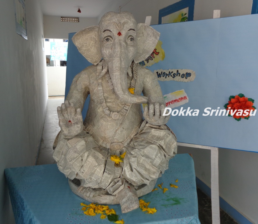Paper Ganesh Idol : Paper mache as word suggest that the idol is made from the mixture of paper pulp, tree gum and white ink.