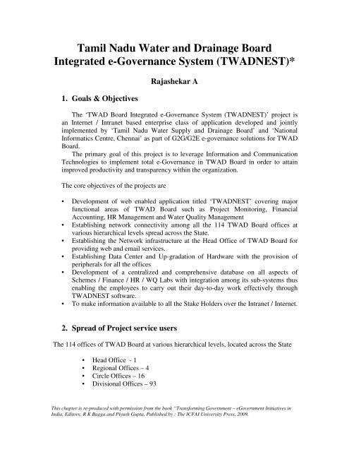 Tamil Nadu Water Board / The tamil nadu water supply and drainage board (twad board) is a statutory body corporate constituted under twad board act, 1970 on 14.04.1971twad board is entrusted with the development of water supply.